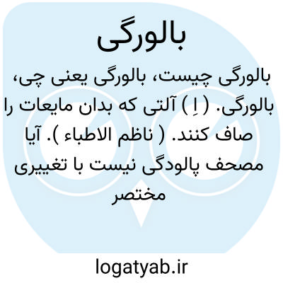 بالورگی. ( اِ ) آلتی که بدان مایعات را صاف کنند. ( ناظم الاطباء ). آیا مصحف پالودگی نیست با تغییری مختصر درمعنی ؟