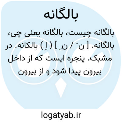 بالگانه. [ ن َ / ن ِ ] ( اِ ) بالکانه. در مشبک. پنجره ایست که از داخل بیرون پیدا شود و از بیرون داخل نمودار نشود. ( از فرهنگ شعوری ج 1 ص 192 ). و رجوع به بالکانه و نیز رجوع به پالکانه شود.