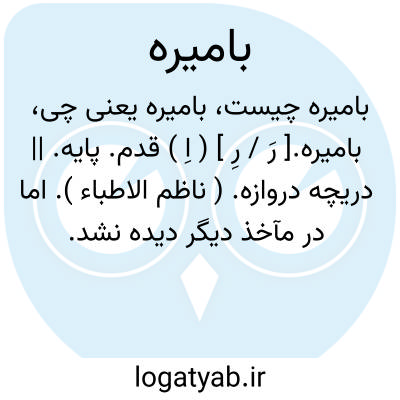 بامیره.[ رَ / رِ ] ( اِ ) قدم. پایه. || دریچه دروازه. ( ناظم الاطباء ). اما در مآخذ دیگر دیده نشد.