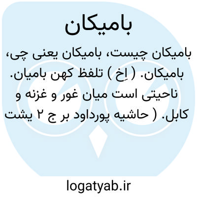 بامیکان. ( اِخ ) تلفظ کهن بامیان. ناحیتی است میان غور و غزنه و کابل. ( حاشیه پورداود بر ج 2 یشت ها ص 326 ):بلخ رود از کوه اپارسن به بامیکان می آید. ( حاشیه پورداود بر ج 2 یشت ها ص 326 ). و رجوع به بامیان شود.