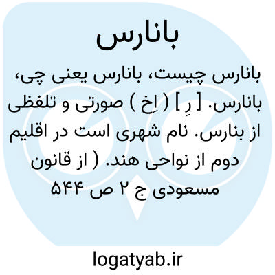 بانارس. [ رِ ] ( اِخ ) صورتی و تلفظی از بنارس. نام شهری است در اقلیم دوم از نواحی هند. ( از قانون مسعودی ج 2 ص 544 ). در لغت سانسکریت بنارس گویند که واقع است در ساحل رود گنگ و برهمن ها آنرامقدس میدانند. ( ناظم الاطباء ). رجوع به بنارس شود.