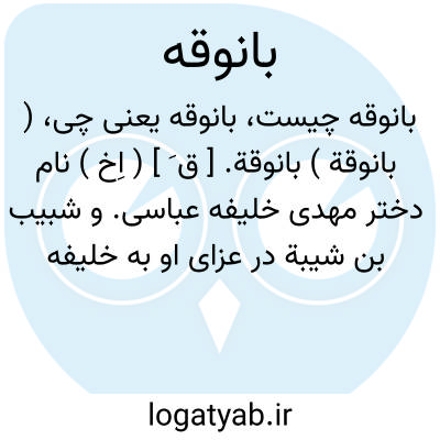 ( بانوقة ) بانوقة. [ ق َ ] ( اِخ ) نام دختر مهدی خلیفه عباسی. و شبیب بن شیبة در عزای او به خلیفه گفت: یا امیرالمؤمنین، ما عنداﷲ خیر لها من عندک، و ثواب اﷲ خیر لک منها. ( از عیون الاخبار ج 3 ص 53 ). گمان میکنم معرب از بانوچه باشد. ( یادداشت مؤلف ).