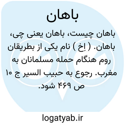 باهان. ( اِخ ) نام یکی از بطریقان روم هنگام حمله مسلمانان به مغرب. رجوع به حبیب السیر ج 10 ص 469 شود.