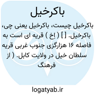 باکرخیل. [ ] ( اِخ ) قریه ای است به فاصله 16 هزارگزی جنوب غربی قریه سلطان خیل در ولایت کابل. ( از فرهنگ جغرافیایی افغانستان ).