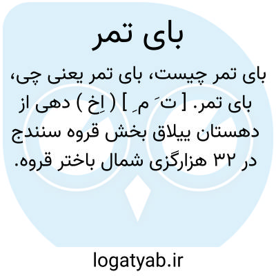 بای تمر. [ ت َ م ِ ] ( اِخ ) دهی از دهستان ییلاق بخش قروه سنندج در 32 هزارگزی شمال باختر قروه. سکنه 265 تن، آب از رودخانه آرزند. محصول آن غلات، لبنیات و توتون است. ( از فرهنگ جغرافیائی ایران ج 5 ).