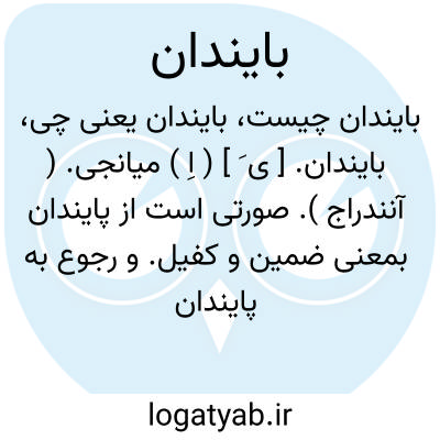 بایندان. [ ی َ ] ( اِ ) میانجی. ( آنندراج ). صورتی است از پایندان بمعنی ضمین و کفیل. و رجوع به پایندان شود.