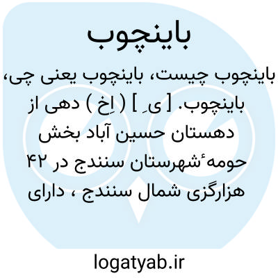 باینچوب. [ ی ِ ] ( اِخ ) دهی از دهستان حسین آباد بخش حومه ٔشهرستان سنندج در 42 هزارگزی شمال سنندج، دارای 1300 تن سکنه، آب آن از چشمه و رودخانه، محصول آن غلات، توتون، صیفی، حبوبات، لبنیات است. زیارتگاهی بنام باباشیخ احمد دارد. ( از فرهنگ جغرافیائی ایران ج 5 ).