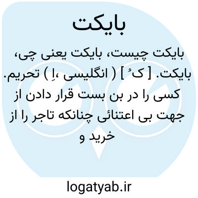 بایکت. [ ک ُ ] ( انگلیسی،اِ ) تحریم. کسی را در بن بست قرار دادن از جهت بی اعتنائی چنانکه تاجر را از خرید و فروش و کسی را از جهت گفتگو و خانواده ای را ازجهت آمد و رفت. این اصطلاح انگلیسی است و نخستین مورد استعمال آن بعد از سال 1879م. است. در این سال یکی از نمایندگان ایرلند بنام پارنل برای حفظ حقوق روستائیان ایرلند ازیشان جمعیتی تشکیل کرد. این جمعیت به اقداماتی متوسل شد که ازآن جمله یکی پایداری در برابر مالکین و از دست ندادن اراضی و دیگری بایکوت کردن دشمنان جمعیت بود. کسانی که از طرف جمعیت روستائیان محکوم به بایکوت می شدند، در زحمت سخت می افتادند. زیرا هیچ یک از افراد ایرلند با ایشان معاشرت و معامله نمیکرد و حتی ملازمان و خدمه نیز ایشان را ترک میگفتند و چون این عمل نخست درباره بویکوت نامی از افسران انگلیسی اجرا شده بود بدین اسم موسوم شد. رجوع به تاریخ قرن نوزدهم و معاصرآلبرماله ترجمه آقای نصراﷲ فلسفی ص 199 به بعد شود.این کلمه در فرهنگ نظام به صورت بایکات آمده است.