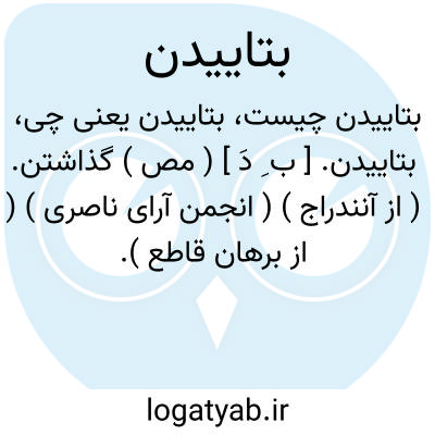 بتاییدن. [ ب ِ دَ ] ( مص ) گذاشتن. ( از آنندراج ) ( انجمن آرای ناصری ) ( از برهان قاطع ). بگذاشتن. رها کردن. صبر کردن. تاب آوردن. هشتن. ( یادداشت مؤلف ). ترک کردن. ( فرهنگ نظام ) ( از ناظم الاطباء ):