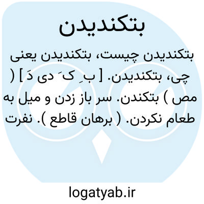 بتکندیدن. [ ب ِ ک َ دی دَ ] ( مص ) بتکندن. سر باز زدن و میل به طعام نکردن. ( برهان قاطع ). نفرت داشتن از طعام. ( ناظم الاطباء ). || آزار یافتن از بدهضمی طعام و تهوع داشتن. ( ناظم الاطباء ).