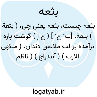( بثعة ) بثعة. [ب َ ع َ ] ( ع اِ ) گوشت پاره برآمده بر لب ملاصق دندان. ( منتهی الارب ) ( آنندراج ) ( ناظم الاطباء ). ج، بُثع.