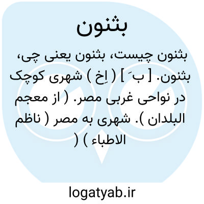 بثنون. [ ب َ ] ( اِخ ) شهری کوچک در نواحی غربی مصر. ( از معجم البلدان ). شهری به مصر ( ناظم الاطباء ) ( از منتهی الارب ).