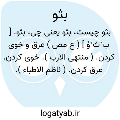 بثو. [ ب َث ْوْ ] ( ع مص ) عرق و خوی کردن. ( منتهی الارب ). خوی کردن. عرق کردن. ( ناظم الاطباء ).