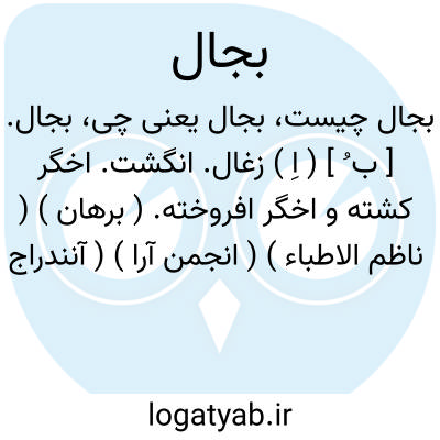 بجال. [ ب ُ ] ( اِ ) زغال. انگشت. اخگر کشته و اخگر افروخته. ( برهان ) ( ناظم الاطباء ) ( انجمن آرا ) ( آنندراج ). زغال که آتش کشته باشد. ( فرهنگ نظام ). زکال. ژکال.سگار. ( شرفنامه منیری ). اخگر. ( فرهنگ جهانگیری ).