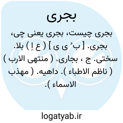 لغت نامه دهخدا بجری. [ ب ُ ی ی ] ( ع اِ ) بلا. سختی. ج، بجاری. ( منتهی الارب ) ( ناظم الاطباء ). داهیه. ( مهذب الاسماء ).