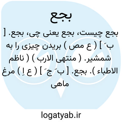 بجع. [ ب َ ج َ ] ( ع اِ ) مرغ ماهی خوار. پلیکان. مرغ سقا. ( دزی ج 1 ). اینکه برخی پرنده شناسان آنرا مرادف قو دانسته اند اشتباه است. ( از نشوء اللغة ص 78 ). پرنده معروفی است و یکی آن بجعة است. ( از اقرب الموارد ).