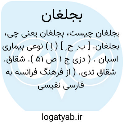 بجلغان. [ ب ِ ج ِ ] ( اِ ) نوعی بیماری اسبان. ( دزی ج 1 ص 51 ). شقاق. شقاق ثدی. ( از فرهنگ فرانسه به فارسی نفیسی ).