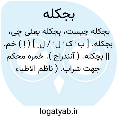 بجکله. [ ب َ ک َ ل َ / ل ِ ] ( اِ ) خم. || بچکله. ( آنندراج ). خمره محکم جهت شراب. ( ناظم الاطباء ). || صراحی که در آن شراب نگهدارند. ( آنندراج ). بطری سنگی. ( ناظم الاطباء ).