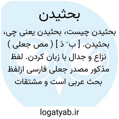 بحثیدن. [ ب َ دَ ] ( مص جعلی ) نزاع و جدال با زبان کردن. لفظ مذکور مصدر جعلی فارسی ازلفظ بحث عربی است و مشتقات هم استعمال میشود. ( فرهنگ نظام ). اما این مصدر جعلی امروز دیگر بکار نیست.