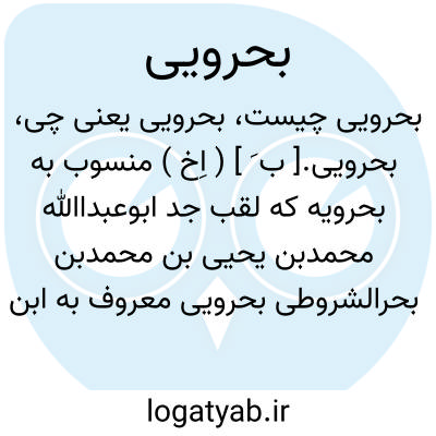 بحرویی.[ ب َ ] ( اِخ ) منسوب به بحرویه که لقب جد ابوعبداﷲ محمدبن یحیی بن محمدبن بحرالشروطی بحرویی معروف به ابن بحرویه از اهل اصفهان می باشد. ( از انساب سمعانی ).