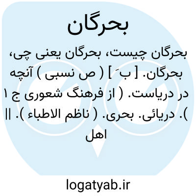 بحرگان. [ ب َ ] ( ص نسبی ) آنچه در دریاست. ( از فرهنگ شعوری ج 1 ). دریائی. بحری. ( ناظم الاطباء ). || اهل دریا. ( ناظم الاطباء ).