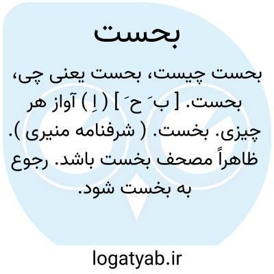 لغت نامه دهخدا بحست. [ ب َ ح َ ] ( اِ ) آواز هر چیزی. بخست. ( شرفنامه منیری ). ظاهراً مصحف بخست باشد. رجوع به بخست شود.