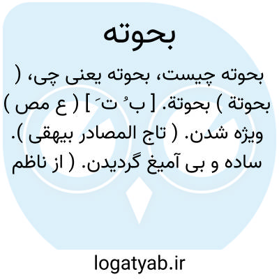 ( بحوتة ) بحوتة. [ ب ُ ت َ ] ( ع مص ) ویژه شدن. ( تاج المصادر بیهقی ). ساده و بی آمیغ گردیدن. ( از ناظم الاطباء ). سادگی. بی آمیغی. صرفی. محضی. خلوص. نابی. ( یادداشت مؤلف ). از ماده بحت است بمعنی ساده و بی آمیغ گردیدن. ( از آنندراج ). محض و صرف و ویژه شدن. بحت گشتن. ( از اقرب الموارد ).