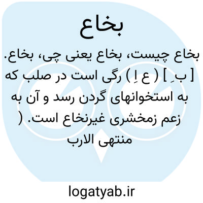 بخاع. [ ب ِ ] ( ع اِ ) رگی است در صلب که به استخوانهای گردن رسد و آن به زعم زمخشری غیرنخاع است. ( منتهی الارب ) ( آنندراج ). رگی در صلب که به استخوانهای گردن رسد. ( ناظم الاطباء ).