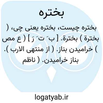 ( بخترة ) بخترة. [ ب َ ت َ رَ ] ( ع مص ) خرامیدن بناز. ( از منتهی الارب ). بناز خرامیدن. ( ناظم الاطباء ). نیک خرامیدن. ( از اقرب الموارد ).