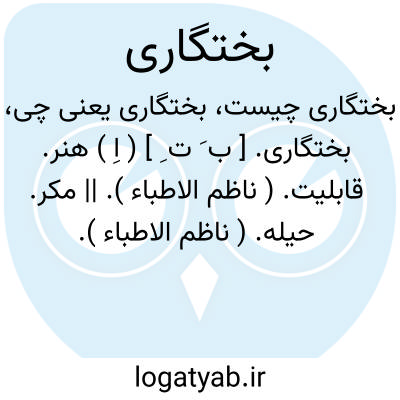 لغت نامه دهخدا بختگاری. [ ب َ ت ِ ] ( اِ ) هنر. قابلیت. ( ناظم الاطباء ). || مکر. حیله. ( ناظم الاطباء ).
