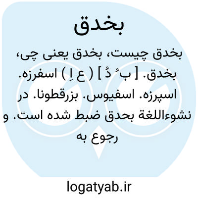 بخدق. [ ب ُ دُ ] ( ع اِ ) اسفرزه. اسپرزه. اسفیوس. بزرقطونا. در نشوءاللغة بحدق ضبط شده است. و رجوع به نشوءاللغة ص 92 و بحدق شود.