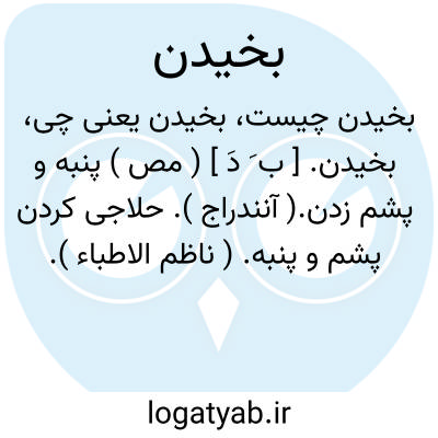 بخیدن. [ ب َ دَ ] ( مص ) پنبه و پشم زدن.( آنندراج ). حلاجی کردن پشم و پنبه. ( ناظم الاطباء ).
