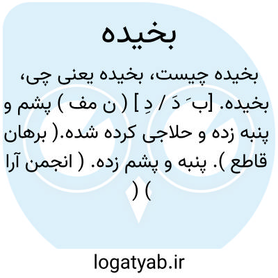 بخیده. [ب َ دَ / دِ ] ( ن مف ) پشم و پنبه زده و حلاجی کرده شده.( برهان قاطع ). پنبه و پشم زده. ( انجمن آرا ) ( آنندراج ). پنبه و پشم برزده و از هم جدا گشته. ( غیاث اللغات ) ( از شرفنامه منیری ). پنبه و پشم واکرده. ( فرهنگ رشیدی ). محلوج و حلاجی کرده شده. پنبه بخیده و پشم بخیده؛ پنبه و پشم حلاجی شده. ( ناظم الاطباء ):