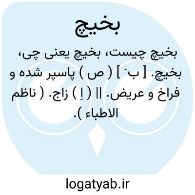 بخیچ. [ ب َ ] ( ص ) پاسپر شده و فراخ و عریض. || ( اِ ) زاج. ( ناظم الاطباء ).