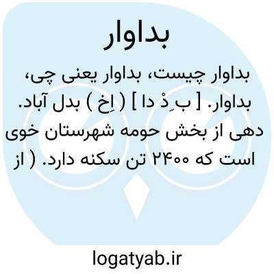 بداوار. [ ب ِدْ دا ] ( اِخ ) بدل آباد. دهی از بخش حومه شهرستان خوی است که 2400 تن سکنه دارد. ( از فرهنگجغرافیایی ایران ج 4 ).