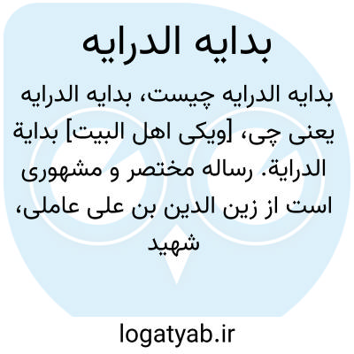 [ویکی اهل البیت] بدایة الدرایة. رساله مختصر و مشهوری است از زین الدین بن علی عاملی، شهید ثانی (965 ق) در علم درایه، شامل یک مقدمه و چهار باب. این رساله اولین تالیفی شیعه در این دانش است.