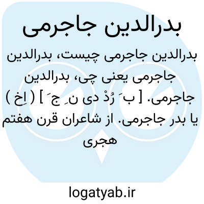 لغت نامه دهخدا بدرالدین جاجرمی. [ ب َ رُدْ دی ن ِ ج َ ] ( اِخ ) یا بدر جاجرمی. از شاعران قرن هفتم هجری است. رجوع به جاجرمی... شود.