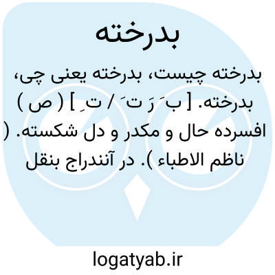 بدرخته. [ ب َ رَ ت َ / ت ِ ] ( ص ) افسرده حال و مکدر و دل شکسته. ( ناظم الاطباء ). در آنندراج بنقل از فرهنگ فرنگ بدرخة است بمعنی محزون و اندوهگین.
