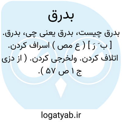 بدرق. [ ب َ رَ ] ( ع مص ) اسراف کردن. اتلاف کردن. ولخرجی کردن. ( از دزی ج 1 ص 57 ).