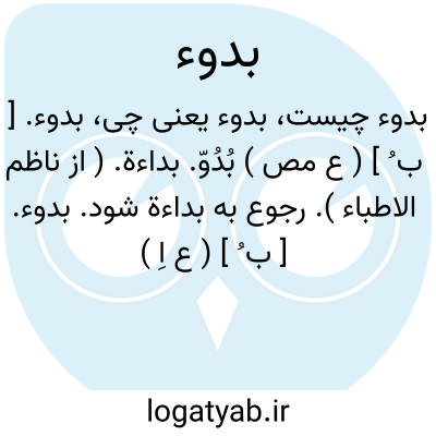 بدوء. [ ب ُ ] ( ع مص ) بُدُوّ. بداءة. ( از ناظم الاطباء ). رجوع به بداءة شود.