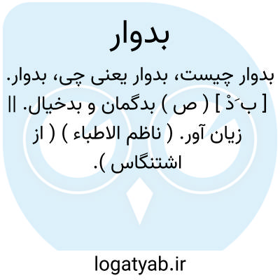 بدوار. [ ب َدْ ] ( ص ) بدگمان و بدخیال. || زیان آور. ( ناظم الاطباء ) ( از اشتنگاس ).