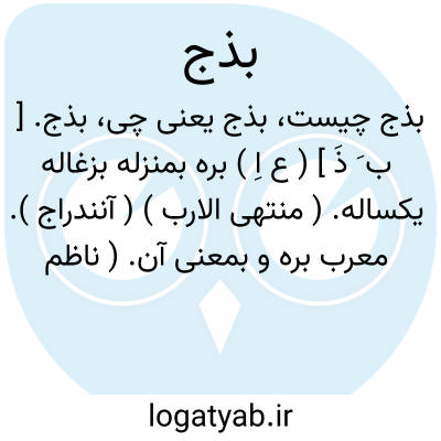 بذج. [ ب َ ذَ ] ( ع اِ ) بره بمنزله بزغاله یکساله. ( منتهی الارب ) ( آنندراج ). معرب بره و بمعنی آن. ( ناظم الاطباء ) ( از معرب جوالیقی ص 58 و 151 ). بره. ( از اقرب الموارد ). ج، بِذجان. ( منتهی الارب ) ( اقرب الموارد ) ( آنندراج ) ( از معرب جوالیقی ص 58 ).