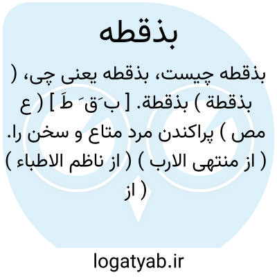 ( بذقطة ) بذقطة. [ ب َق َ طَ ] ( ع مص ) پراکندن مرد متاع و سخن را. ( از منتهی الارب ) ( از ناظم الاطباء ) ( از ذیل اقرب الموارد ).