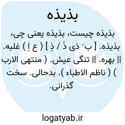 بذیذه. [ ب َ ذی ذَ / ذِ ] ( ع اِ ) غلبه. || بهره. || تنگی عیش. ( منتهی الارب ) ( ناظم الاطباء ). بدحالی. سخت گذرانی. ( از اقرب الموارد ).