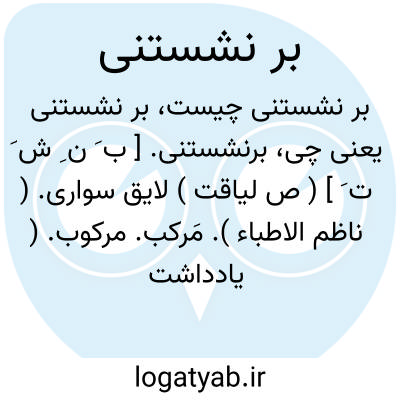 برنشستنی. [ ب َ ن ِ ش َ ت َ ] ( ص لیاقت ) لایق سواری. ( ناظم الاطباء ). مَرکب. مرکوب. ( یادداشت دهخدا ). رَحول. ( دهار ). قذّاف: اِرکاب؛ ستور برنشستنی دادن کسی را. قَعش؛ برنشستنی شبیه هودج. ( از منتهی الارب ). قَعود، مَطیّة؛ اشتر برنشستنی. ( دهار ).