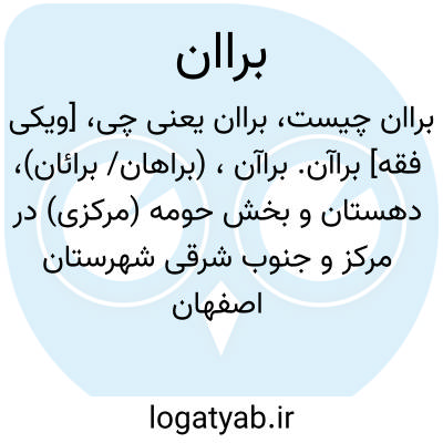 [ویکی فقه] براآن. براآن، (براهان/ برائان)، دهستان و بخش حومه (مرکزی) در مرکز و جنوب شرقی شهرستان اصفهان می باشد.