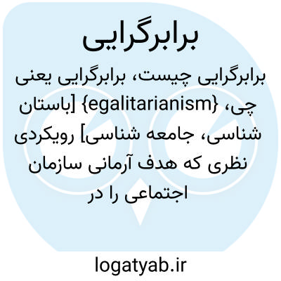 {egalitarianism} [باستان شناسی، جامعه شناسی] رویکردی نظری که هدف آرمانی سازمان اجتماعی را در تحقق برابری موقعیت ها و امتیازات و شرایط می بیند