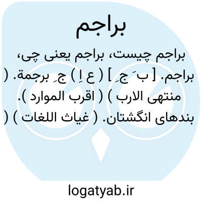 براجم. [ ب َ ج ِ ] ( ع اِ ) ج ِ برجمة. ( منتهی الارب ) ( اقرب الموارد ). بندهای انگشتان. ( غیاث اللغات ) ( آنندراج ). رجوع به برجمة شود.
