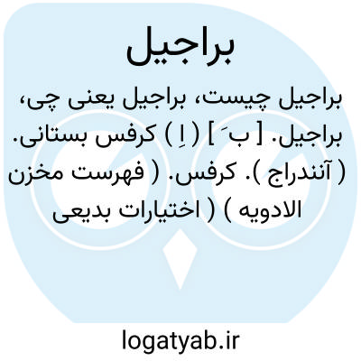 براجیل. [ ب َ ] ( اِ ) کرفس بستانی. ( آنندراج ). کرفس. ( فهرست مخزن الادویه ) ( اختیارات بدیعی ). || گیاهی مأکول و دوائی که جعفری نیز گویند. ( ناظم الاطباء ).