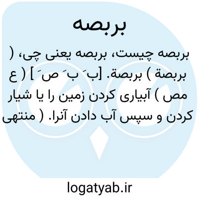 ( بربصة ) بربصة. [ب َ ب َ ص َ ] ( ع مص ) آبیاری کردن زمین را یا شیار کردن و سپس آب دادن آنرا. ( منتهی الارب ) ( ناظم الاطباء ). بربص الارض ارسل فیها الماء لتجود. ( اقرب الموارد ).
